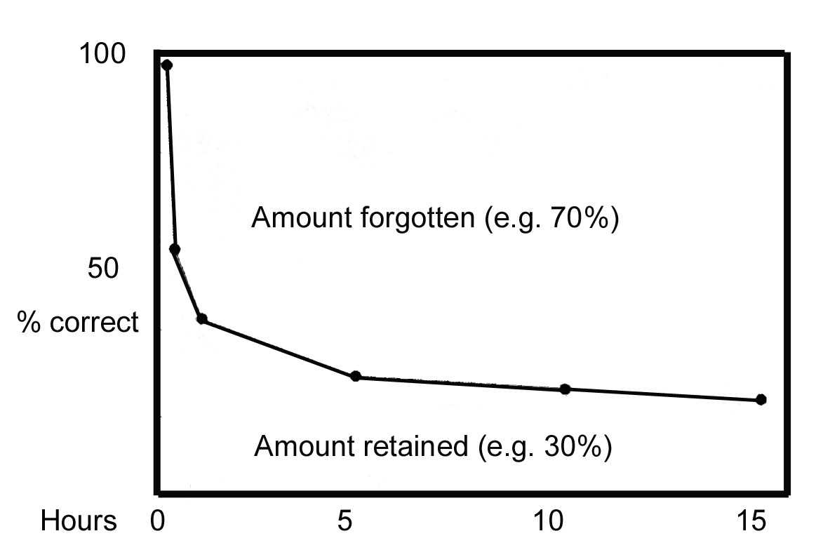 Today's researchers usually express results of a memory test as a percentage of items retained. If you remember 4 of 10 items, you have 40% retention. Forgetting is the opposite of retention. If you have 40% retention, you have 60% forgetting.